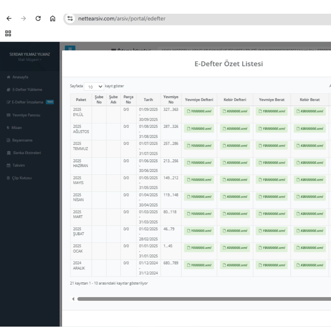 - Sistem ilgili aya ait E-Defter dosyalarını üretir.