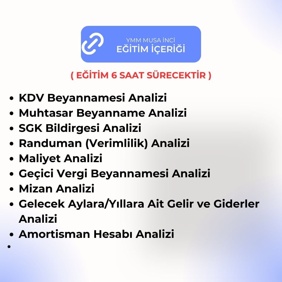 Bu eğitim sadece YMM Musa İNCİ tarafından verilmekte olup, alanında uzman bir isimden doğrudan bilgi edinme fırsatı sunmaktadır.